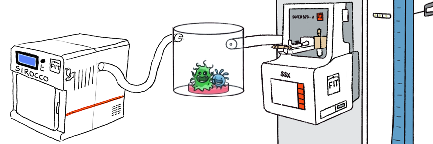 Variations in temperature pressure and humidity of the carrying gas can affect the consistency of analytical results. To solve this, SIROCCO integrates temperature, pressure and flow control, an active charcoal filter to trap VOCs, and an active humidity controller to ensure consistent ionization efficiency.